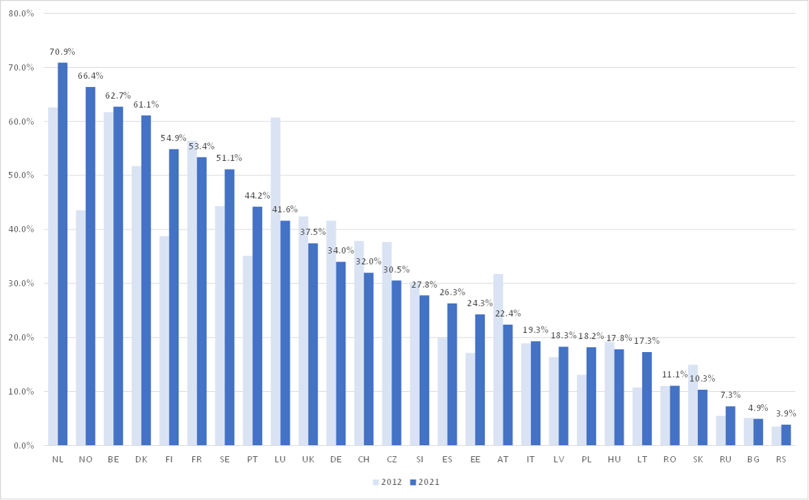 Užívateľnosť HAK v Európskej únii a Veľkej Británii, porovnanie rokov 2012 a 2021.